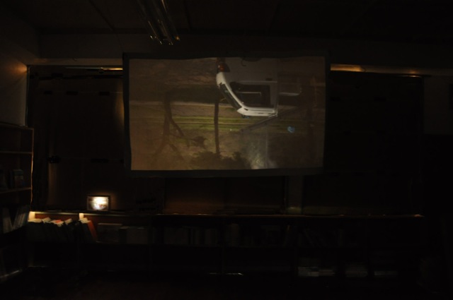 畳1畳半大のスクリーンに、校庭の風景を映し出しました。